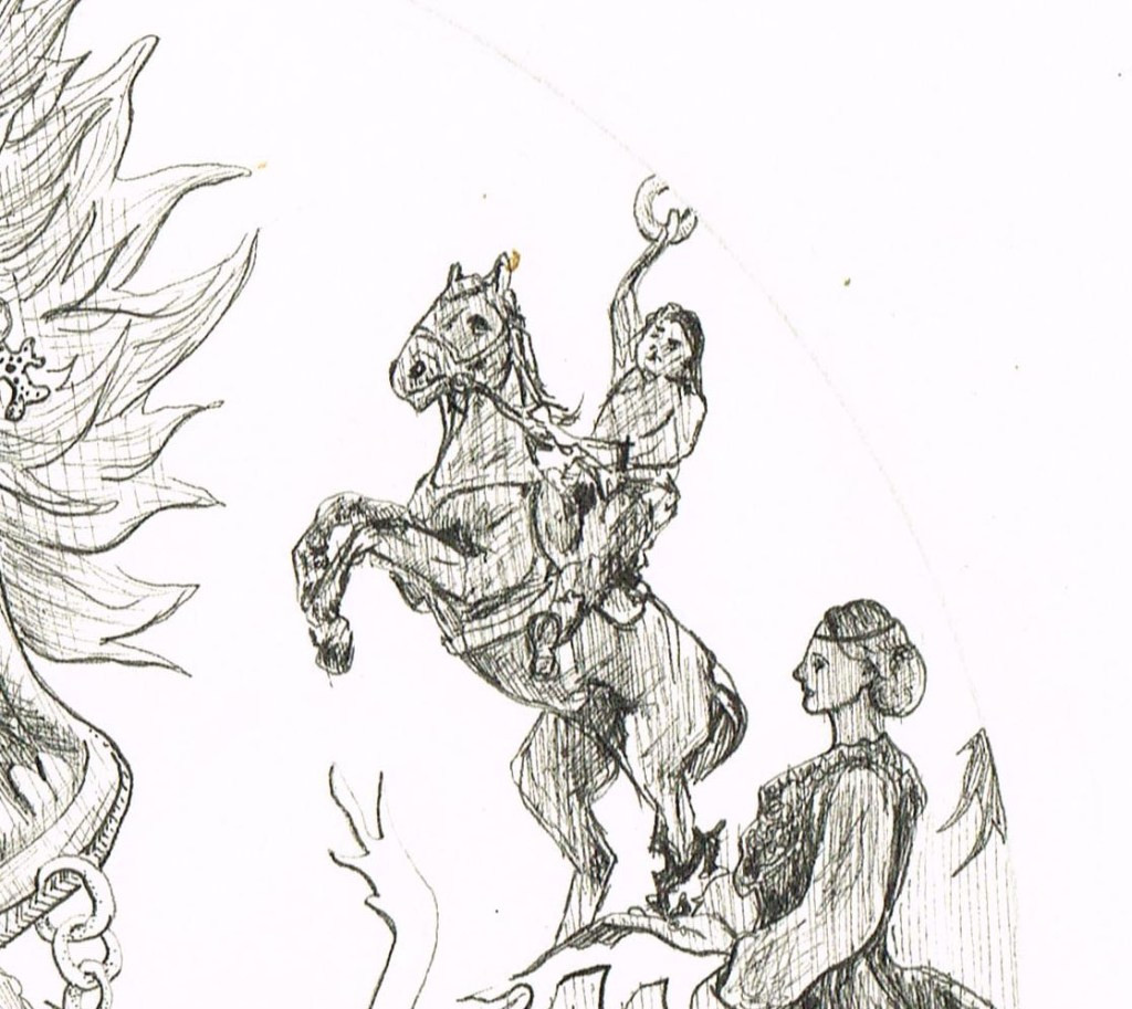 Starting a drawing is always exciting. Here I really let me imagination run riot as I created a sketch focused on the relationship between the dragon’s flames and the princesses.