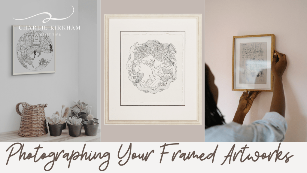 There are few things more frustrating that finishing a work, framing it perfectly and then as you take a photo to share your masterpiece your met with glare from the frame’s glass. When work is under glass if is incredibly difficult to photograph. In this post I’ll run through a few options to help you get great photos of your artwork in its frame.