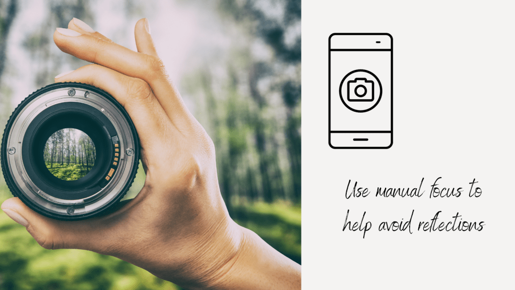 - use a manual focus to control the level of reflections