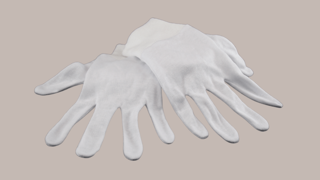 *there is an ongoing debate on whether cotton gloves or powder free nitrile gloves are best for handling artwork that could be damaged by the skins oils. For photographic work wearing gloves is a must, for other artworks simply washing and drying the hands might be a better option.