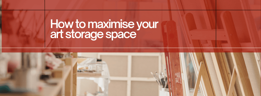 While access to storage space (think your mum’s spare room) is the ideal, realistically you may need to keep everything on site. For paper works tubes offer efficient ways to store works until there’s space for a plan chest. For larger canvas works think of the ceiling racking as an option, or keep them under the bed.